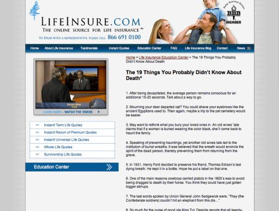 LifeInsure.com successfully tapped into an unexpected goldmine of links and buzz with their article, “19 Things You Probably Didn’t Know About Death.” It doesn’t seem like the type of politically correct fare a life insurance brokerage might feature, right?