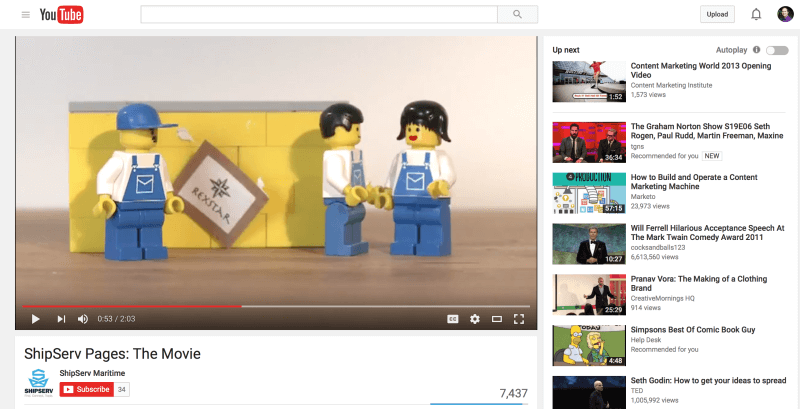 ShipServ, on the other hand, lost the content game before it even started with their explainer video made with Legos. Cute concept, but a big disconnect: only serious prospects of their software would want to watch a video explaining how their solution worked.