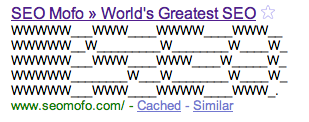 I love to see creative snippets. Here’s one of my favorites, from Darren Slatten’s home page (SEOmofo.com):