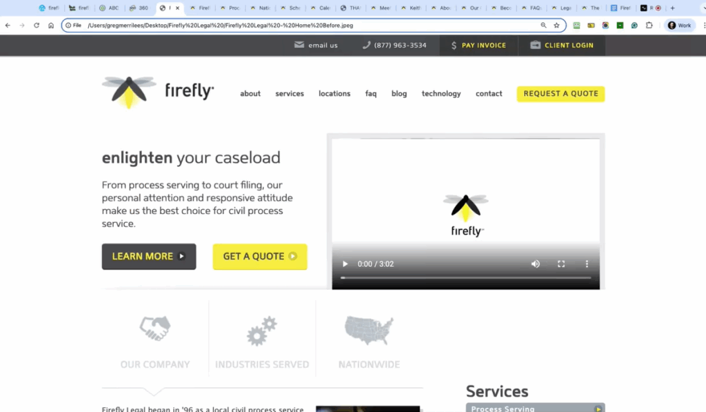 The problems weren’t just cosmetic. The old site relied heavily on stock photography, making Firefly appear like any other generic provider rather than the established firm it was. The absence of strong trust signals — testimonials, client logos, or proof of industry authority — meant there was nothing to reassure skeptical visitors.