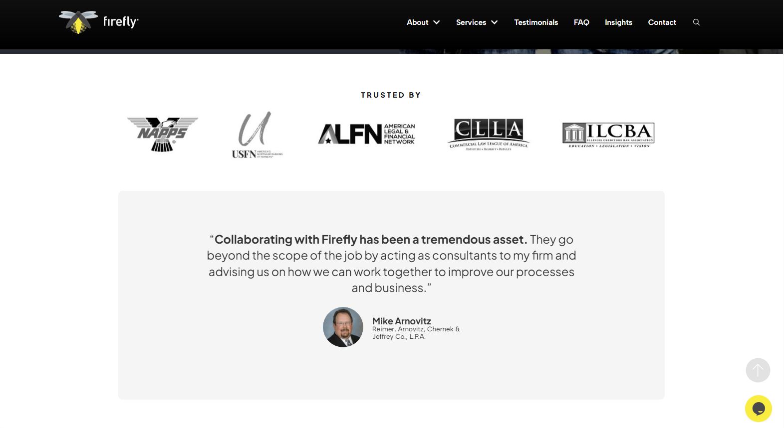 The redesign tackled these gaps head-on. Stock photos were replaced with authentic team photography, finally putting real faces to the name. Navigation was simplified so prospects could easily understand Firefly’s services and coverage areas. Trust-building signals — client testimonials, partner logos, and professional associations — were woven across the site.