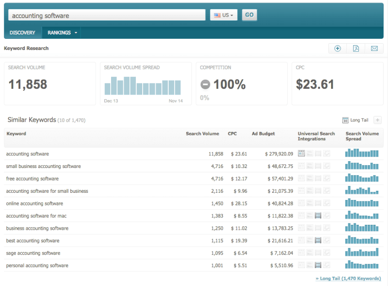 Searchmetrics is capable of analyzing keyword reach by accessing its enormous library of keywords (over 600 million), which is the biggest in the biz.
