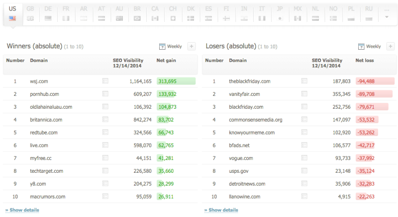 This is also how SEO Visibility is calculated. SEO Visibility is the Searchmetrics metric that encompasses a large number of search ranking calculations to come up with one ‘visibility’ factor. SEO Visibility is now virtually accepted as industry standard for calculating relative SEO winners and losers.