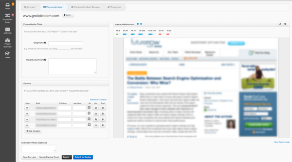 Here’s where a unified toolset can become a lifesaver. With that unified toolset, you build and run the outreach campaign in its entirety, from creating the list of sites to target, to getting the contact info, to preparing and sending the outreach emails, to organizing and automating responses, to maintaining a CRM and link “pipeline.”