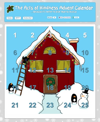 Now let me chronicle for you one of my absolute favorite holiday-themed link bait campaigns, the The Acts of Kindness Advent Calendar from the coaching directory Noomii.com. (Disclosure: Noomii is a client of mine.)